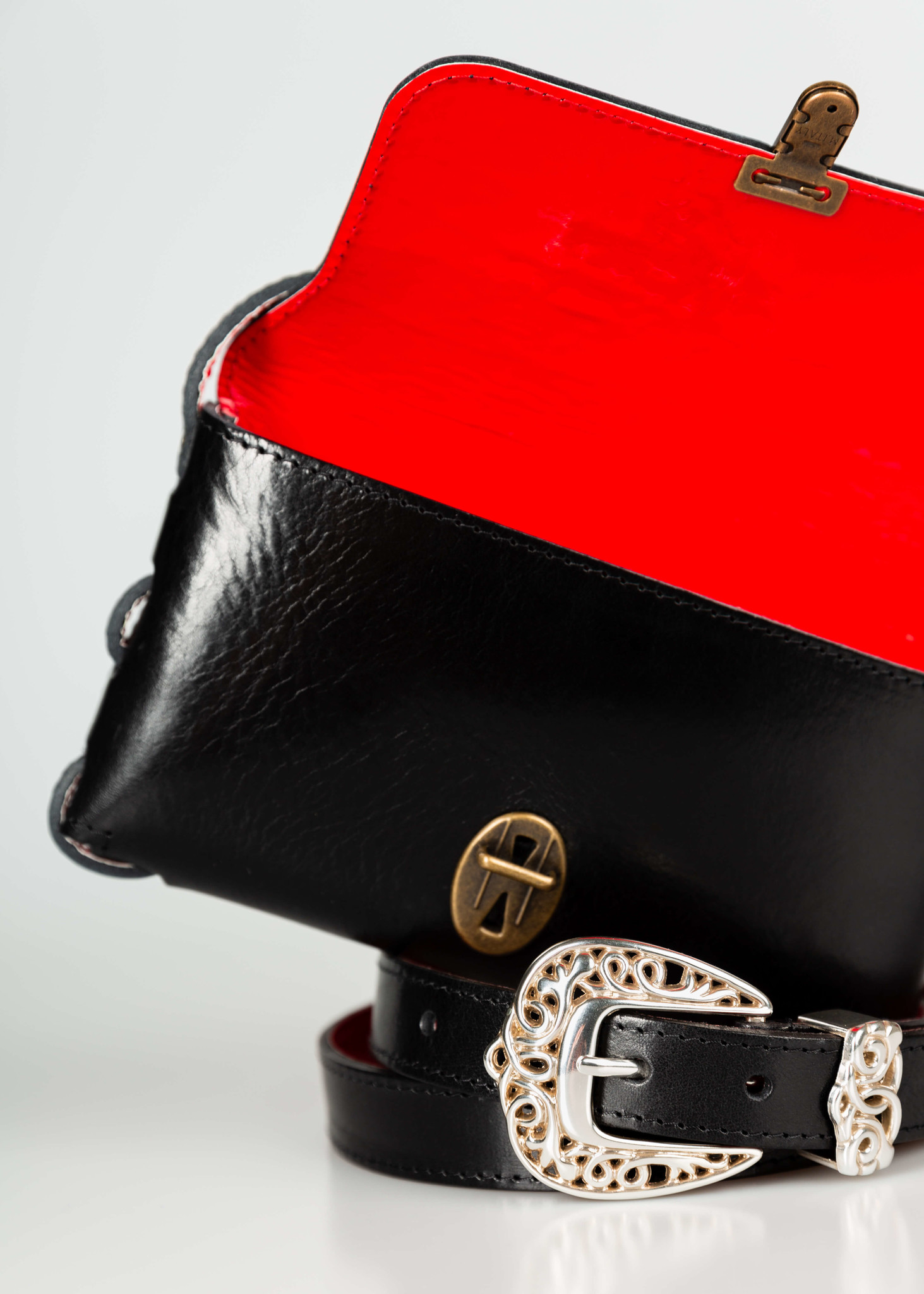 This handmade bag from Your Belt is the eye-catcher for every outfit. The bag is made to order, so you have a custom made bag with a red interior. The red lacquer is visible in the inside of the bag up to the handle.